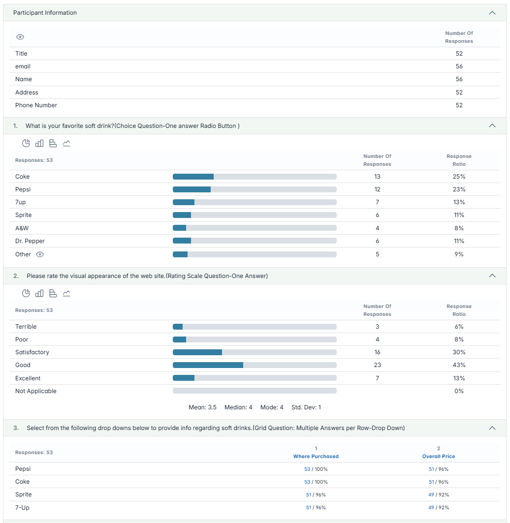Visualize and analyze collected data through graphs and statistics, apply advanced queries and filters, and export raw or aggregated results for deeper insights.